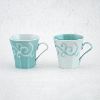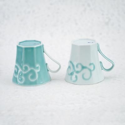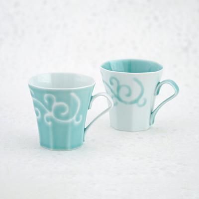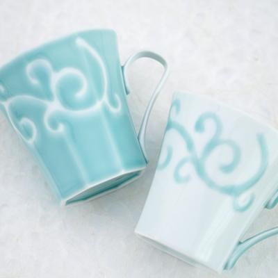 青磁×白磁 小技の光るマグカップ〜末広がりの八角形