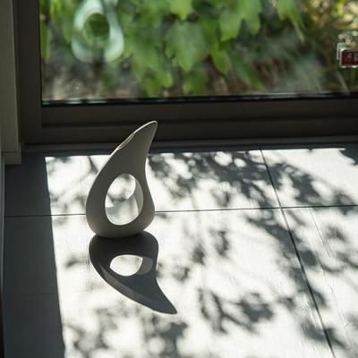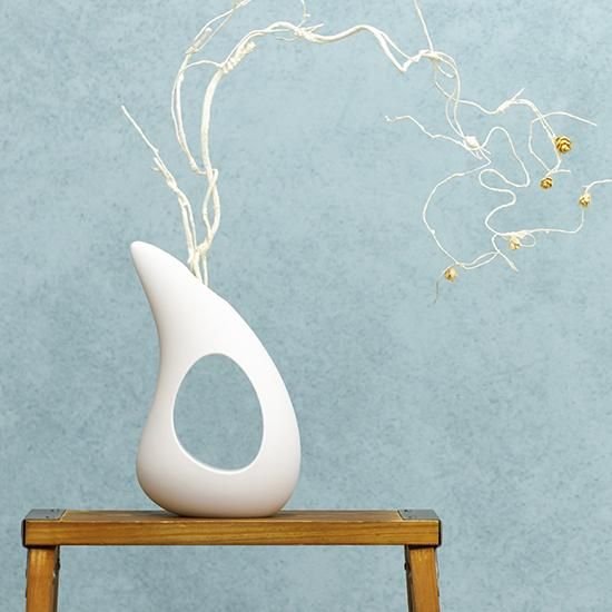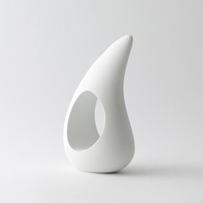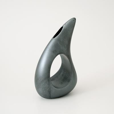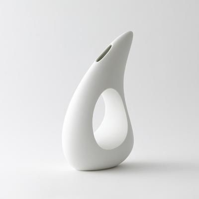 水滴をイメージした斬新なフォルムの花器。花を活けても活けなくても空間が華やかに。
