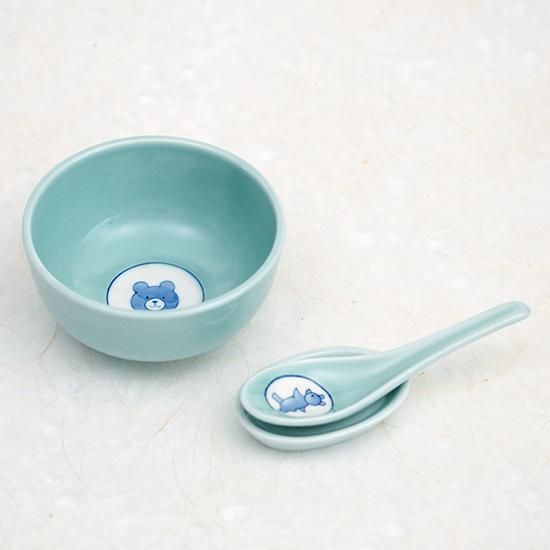 小さな手になじみやすく、白いご飯からデザートまで多目的に使えるお碗とレンゲのセット。