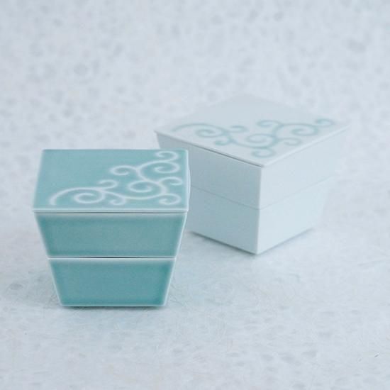 サイズ: 蓋 約9.0cm×9.0cm 1段目 約9.0cm×9.0cm×H3.5cm